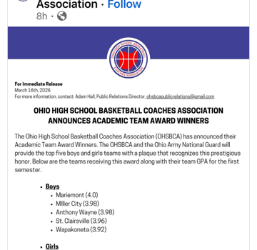 3.8 GPA Team Average for AW Boys Basketball Team